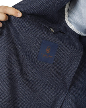 Gagliardi Blue Wool Cotton Cashmere Prince of Wales Check Jacket