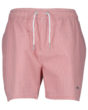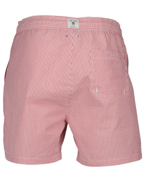 Stay stylish and comfortable at the beach or pool with Gant Ruby Red Seersucker Swim Shorts. These swim shorts feature a classic seersucker fabric in a bold ruby red color, perfect for making a statement. Enjoy the lightweight and breathable fabric while lounging or swimming.