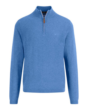 The Fynch-Hatton Blue Troyer Zip Air Cotton Jumper offers a fresh take on classic style with its breathable air cotton fabric, ideal for comfort throughout the day. Featuring a half-zip Troyer neck, it provides easy temperature control and a polished look. Its blue color adds a modern touch, making it perfect for both casual outings and smart-casual occasions. This jumper combines practical design with timeless appeal.